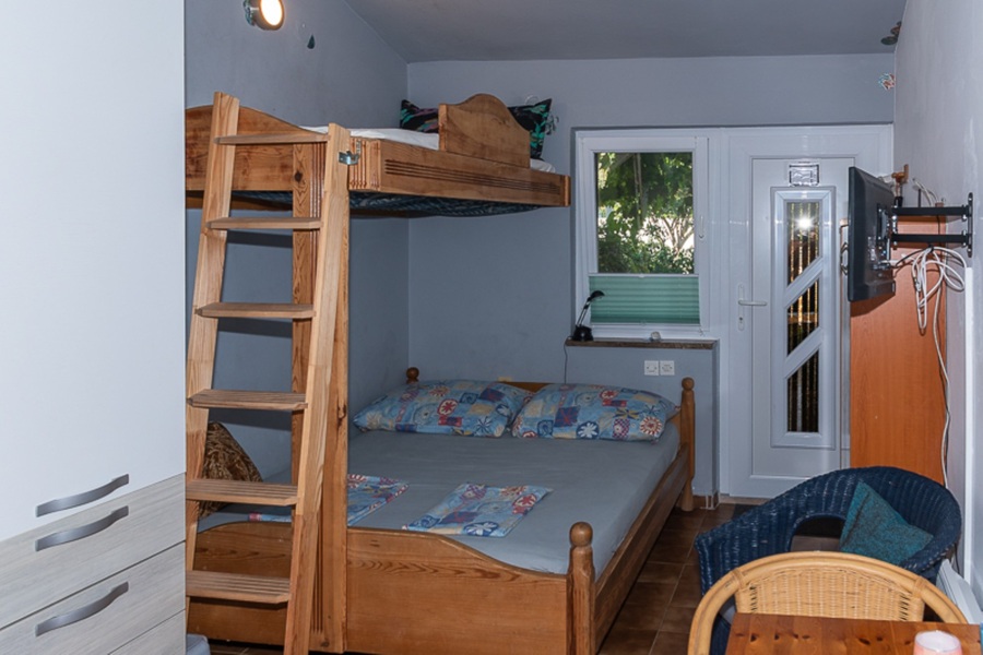 V přízemí se nachází jeden apartmán se dvěma ložnicemi a další menší studio situované v nižší části domu. V prvním patře je umístěn další prostorný apartmán se dvěma ložnicemi, odkud je zároveň krásný výhled na moře. Dispozice domu tak umožňuje pohodlné užívání více rodinami nebo kombinaci vlastního bydlení a pronájmu.